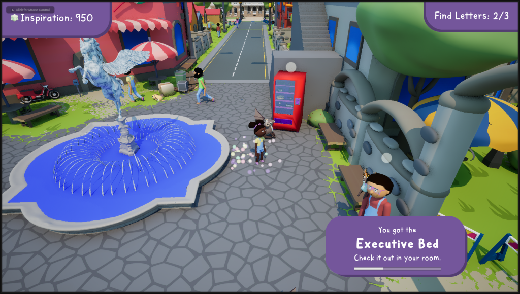 I was the programmer and primary creator of this prototype, which was created as a tie-in to an unannounced animated movie. I worked with some high-level designs from Telescope’s designer (Nikola Kuresevic) and some art concepts from Telescope’s artist (Emmanuel Ayala), but otherwise made most of the game myself (though Nikola also did some level design, quest design, collectable design, and NPC and dialogue authoring).