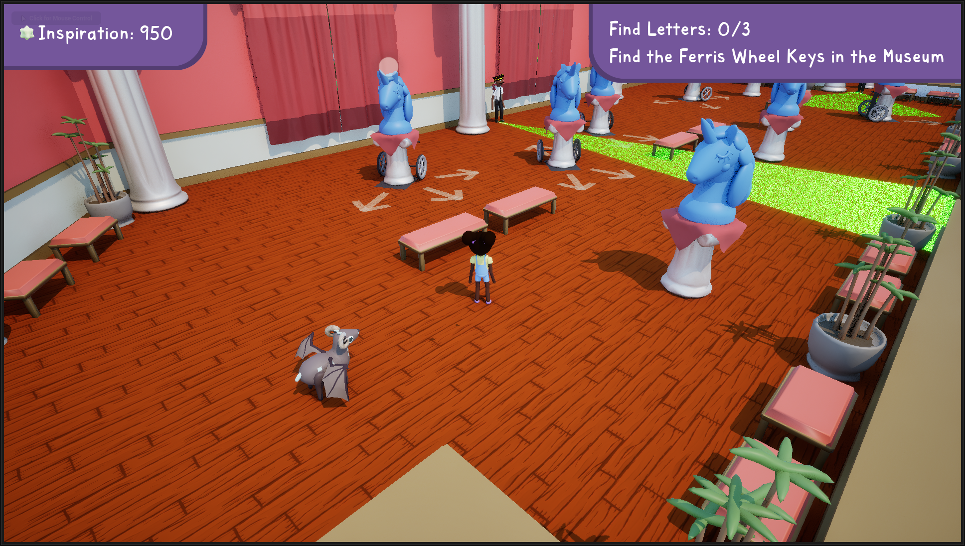 My roles on this project: ⌨️programming, 📒design (including game design, level design, UI design, cutscene authoring, and dialogue authoring), 🎨 art (incl. environment art and 3d art like character models and adapting asset packs), 🏃➡️animation (including Mixamo integration), 🎛️ UI (design and implementation)